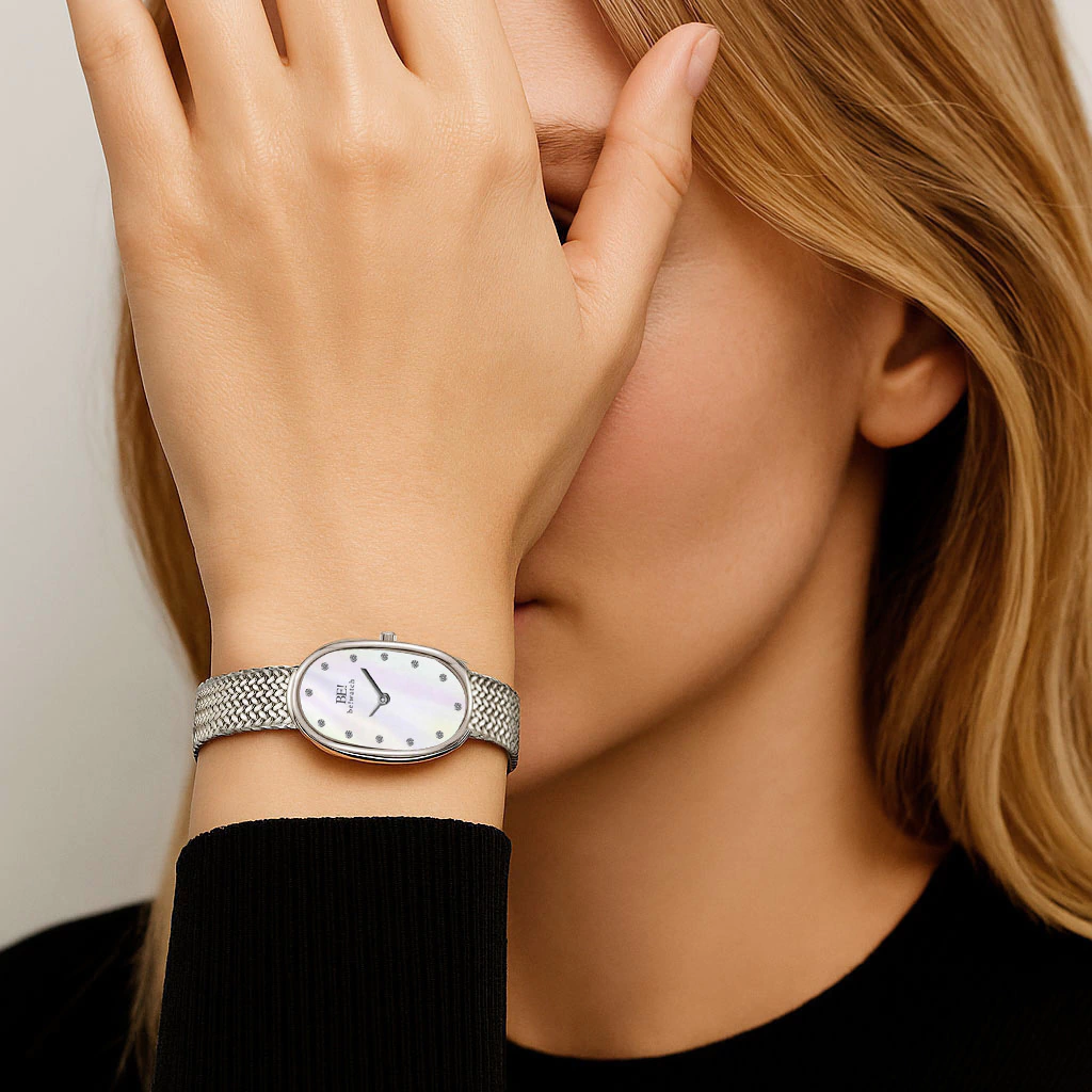 Traz uma nova perspectiva ao design oval atemporal, oferecendo uma caixa fina e refinada e um caráter distinto e elegante. Inspirado em linhas ovais clássicas, ele apresenta uma nova pulseira de aço inoxidavel, adicionando um toque vintage e integrando-se perfeitamente à caixa do relógio por meio de fechos ocultas.